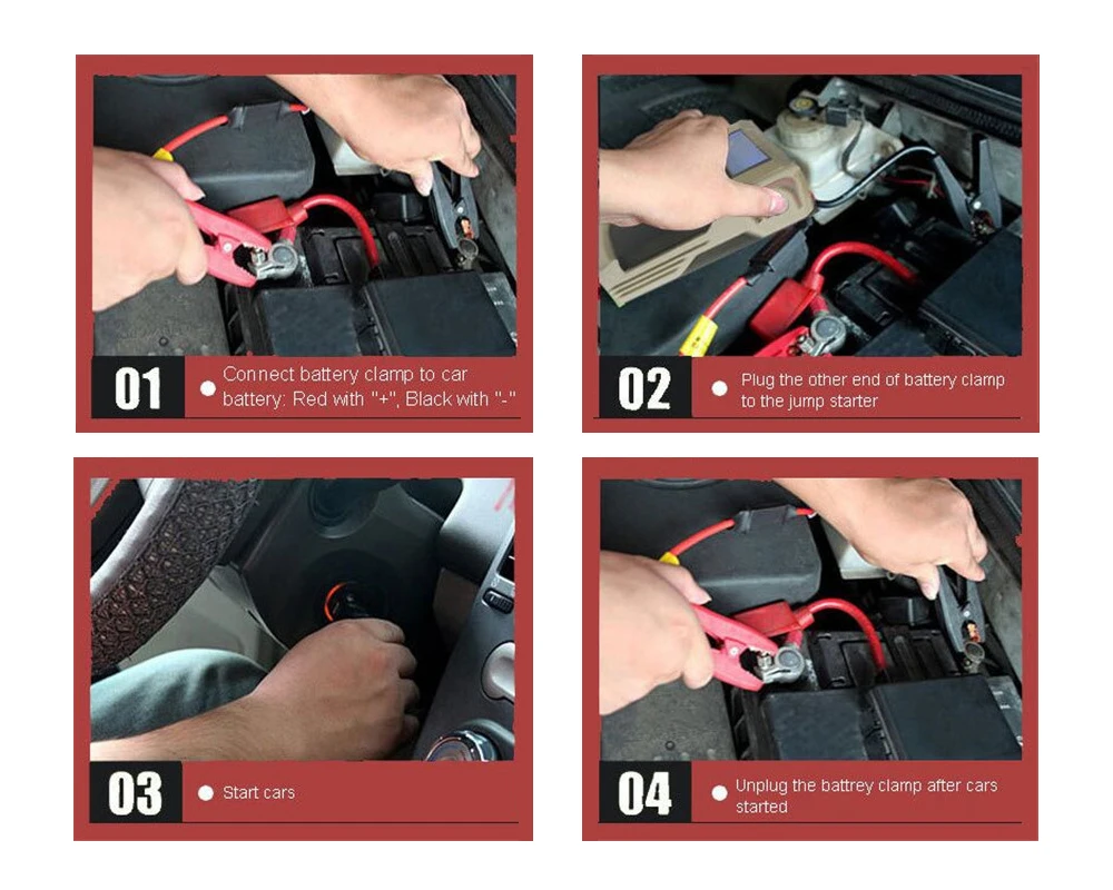 Attention please:1. For your safety, please DO NOT disassemble the jump starter. Once dismantled by yourself, we will not service for any arising issue. 2. Please make sure that the jump starter is Fully Charged before startingthe engine. 3. If the jump starter can not start at one time. Please try it again after 30 seconds or longer, and start more slowly.