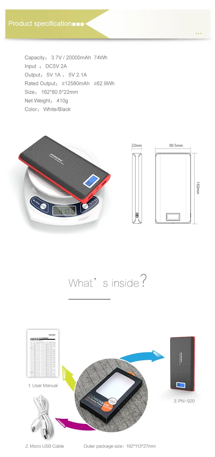 On-time Delivery: If you do not receive your purchase within 60 days, you can ask for a full refund before order completion (when you click "Confirm Order Received" or exceed confirmation timeframe).Big Stock Deals Pineng Power Bank 20000mah PN-920 External Battery Pack Powerbank With Led Display 5V 2.1A For iPhone Samsung LG HTC Xiaomi OPPO