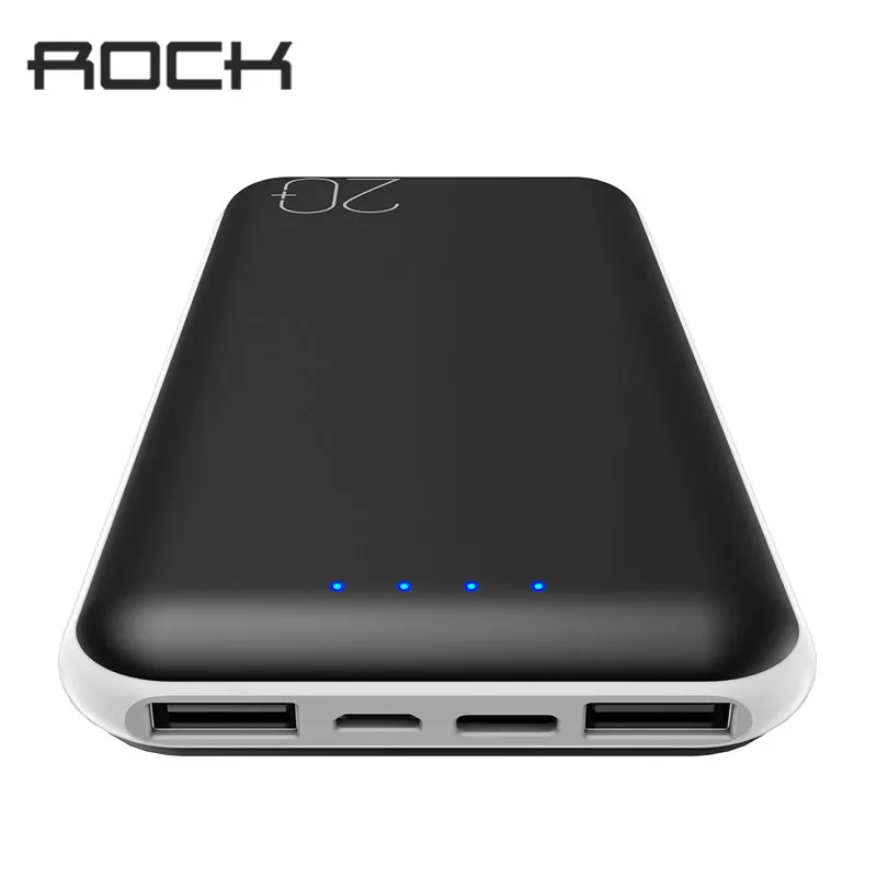 ROCK Power Bank 20000mAh Portable External Battery Charger Dual USB PowerBank for iphone X for Samsung Note 8 S8 Product Details >>>> Brand : ROCK Series : P48 power bank Material:Fireproof ABS+PC Colors: black/white Product style : External Battery Pack for Mobile phone Voltage :Input: 5V Output: 5V Input Interface : Micro USB TYPE C Output Interface : USB Micro USB input:DC 5V/2A TYPE C input:DC 5V/2A USBA Output:5V 2.4A Battery Capacity:3.7V 20000mah Weight:380g Packing list: Power bank *1(cable included)picture show >>>dianxiaobao_3