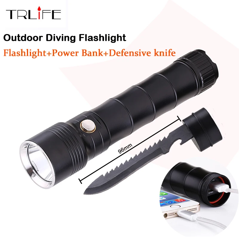 Power Bank Charger Sale Collections provide portable battery,usb powerbank,universal power bank,power charger Excellent Deals Multi-functional CREE XM L2 LED Flashlight 100m Diving Flashlight Power Bank Torch Tactical with Knife Self Defense. Get Discount Now! Only US $44.99/piece at this time. Hurry buy Now before back to normal price! Normal price US $49.99 or you can Check price now. Dont waste your time. Buy Now only in TRLIFE Official Store Trusted Seller Store!