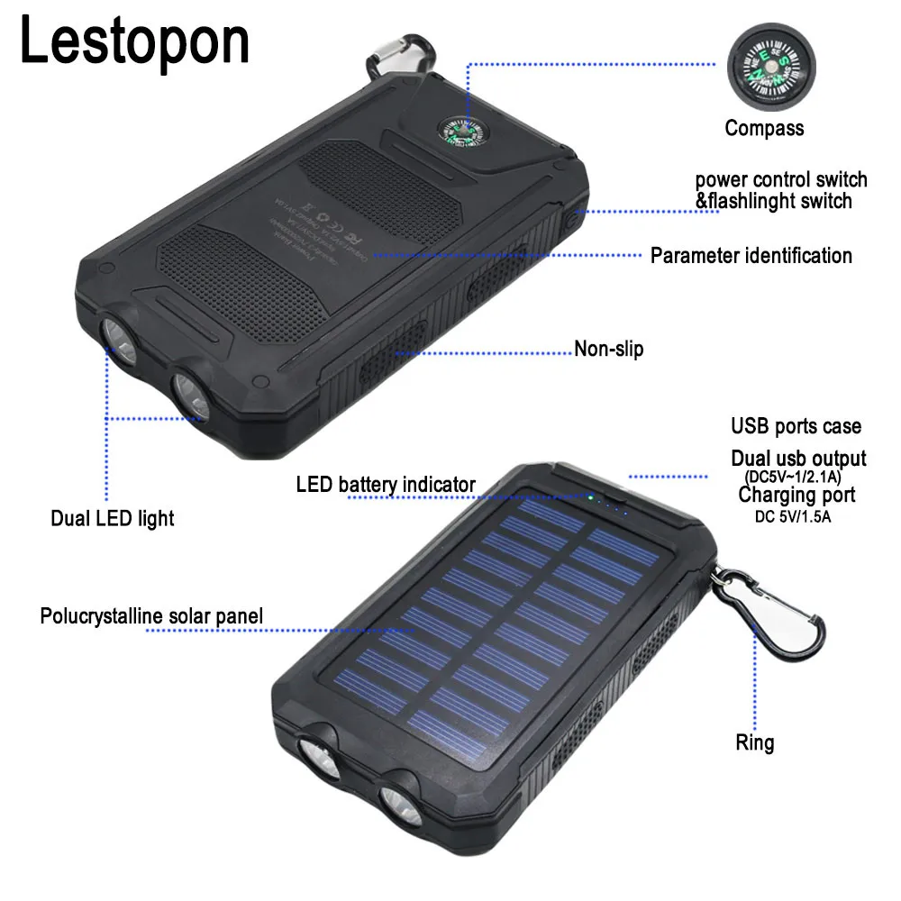 On-time Delivery: If you do not receive your purchase within 60 days, you can ask for a full refund before order completion (when you click "Confirm Order Received" or exceed confirmation timeframe).Cool Sale New Waterproof Solar Power Bank Real 20000mAh Dual USB External Polymer Battery Charger Outdoor lamp Light Powerbank Ferisi