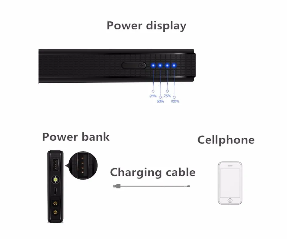 · Power Bank – to charge portable electronic devices, such as mobile Smartphones, portable gaming system, digital cameras, camcorders, Bluetooth headsets, portable GPS devices, and any other DC 5V powered electronic devices.