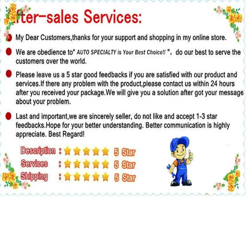 1. When theres any problem about your order, please contact us first, instead of opening dispute or leaving negative feedback. We will do our best to help you solve any problem.