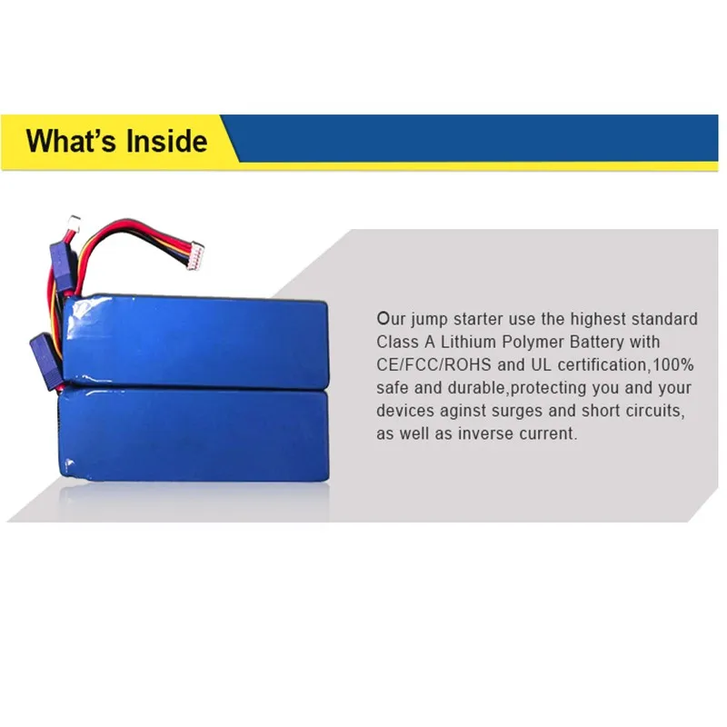 Mian functions: 1.Start 12v gasoline car(<=3000cc) 2.Charge cellphones etc.. 3.Charge laptops, car refrigerator etc. 4. Support flash, strobe, SOS signal. 5.Rescure Hammer 6.Belt cutting knife Product details show