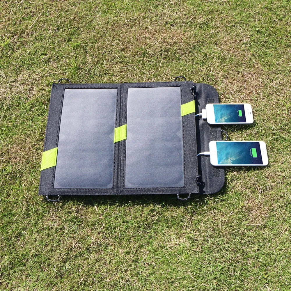 Although it can not be used in raining days due to the lack of sun, the solar charger is water resistant and rugged enough to withstand most environment conditions in the wild.