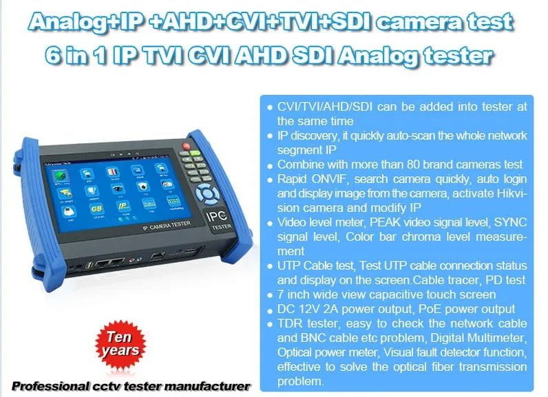 On-time Delivery: If you do not receive your purchase within 60 days, you can ask for a full refund before order completion (when you click "Confirm Order Received" or exceed confirmation timeframe).Great Special 7 inch capacitive touch screen, IP+ Analog+HD Coaxial Tester 12V2A/ 5V 2A power bank PoE power output HDMI out Built-in WIFI