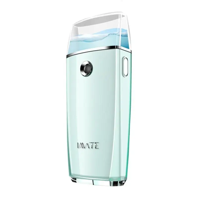 IMATE Handy Nano Mist Spray Facial Moisturizing Sprayer Face Care Hydrating 2200 mAh USB Rechargeable Emergency Power Bank Skin Care Atomizing Beauty Instrument for Home Travel Use Features:Nano Mist for Better Absorption: Nano water molecules is tiny enough and can penetrate into the bottom of skin, let skin drink enough water and will not destroy your make-up. Emergency Power Bank: It looks only like skincare mist sprayer but it is so much more. It has built-in 2200mah rechargeable lithium battery for charging your mobile devices 18ml Large Capacity Water Tank: 18ml water tank, when you feel dry on your skin in the office, car, home or other places, It can spray mist 15 minutes continuously and atomized water molecules can deeply moisturize your skin.Widely Use: Perfectly suitable for those people who has skin of drying, peeling, itching, accelerated aging, matte, oily, rough or lose the tender.Compact Portable Size: Palm size bring your much convenience and super use experience. Easy to put it in your handbag or pocket for travel use. Enjoy facial sauna no matter where you are. Main Highlights:*Nano water molecules is tiny enough and can penetrate into skincells*Deep hydrating without ruining makeup*Ultra high-speed vibration technology for atomizing effect*18ml Water Tank can last up to 20mins of water replenishing *Deeply moisturize your skin anytime and anywhere*Work as a 2200mAh USB emergency power bank *Skin Moisturizing and Skin Moistening Specifications:Brand:IMATEProduct Model:IM-3000Product Type: Handy Nano Mist SprayerBody Material:ABSWater Tank Volume:18mLAtomization Amout: 1-1.8mL/MinutesEfficiency of Atomization: A GradePower:10WVoltage:3.7V, DC 5V/1A Battery Capacity: Built-in rechargeable 2200mAh lithium battery Color: Blue Main Item Size: 12.5 * 5.3 * 2.0cm/4.92 * 2.1 * 0.79Inch Main Item Weight: 120g / 4.23ozPackage Size: 15.5 * 15.5 * 3.5cm / 6.10 * 6.10 * 1.37inch Package Weight: 238g / 8.3oz Package List:1 * Handy Nano Mist Sprayer1 * USB Charge Cable 1 * Pouch Bag1 * English / Chinese User Manual Easy To Use:1.Please upside down the product,and open the tank cover in a counterclockwise direction,then put into right amount of water.2.Please keep the product upside-down and tighten the tank cover clockwise.3.Please gently shake up and down the product three times, then press the "Moisturizing Key", light turn blue, spray nozzle will spray.4.Press the "Moisturizing Key" again,blue light is off, spray nozzle stop spraying. Note:1.When the product battery power is low, the indicator light will turn red and flash five times and then it will shutdown automatically.2.You should long press the button to unlock it.3.When put it in bag, you could press the button for 3 seconds to lock it so that it wouldnt wet your bag.4.You should use it after fully charge the product.5.Be sure to use mineral water with partial silicic acid, no use toner and pure water to avoid water droplets. Actual product packaging and materials may contain more and different information than what is shown on our website.Pls note: Due to the difference between different monitors, the picture may not reflect the actual color of the item.
