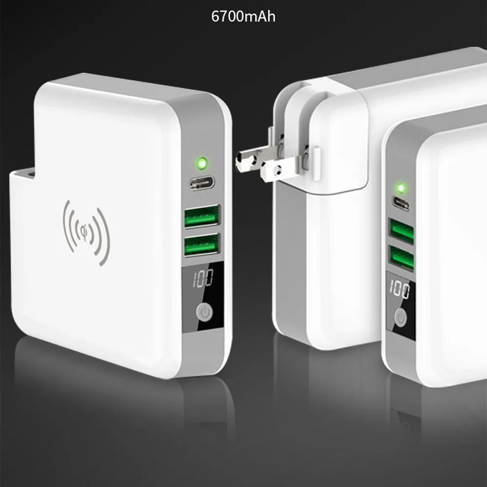 - 6700mah Wireless Charger Power Bank: Built-in high-quality and safe Li-polymer battery, good efficiency for energy storage