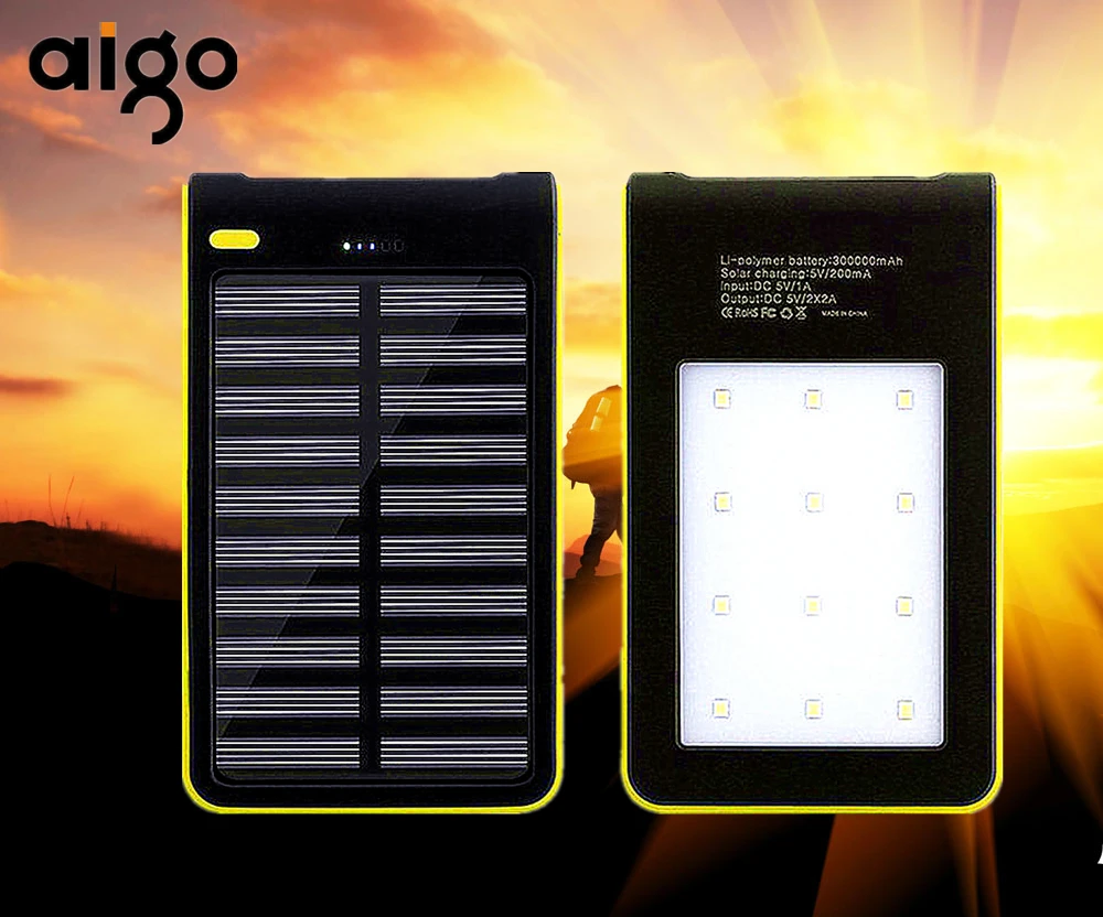 On-time Delivery: If you do not receive your purchase within 60 days, you can ask for a full refund before order completion (when you click "Confirm Order Received" or exceed confirmation timeframe).Excellent Clearance Aigo 300000mAh Universal Solar Power Bank Charger Dual USB External Charger Battery Power Bank Long Lasting Solar Charger