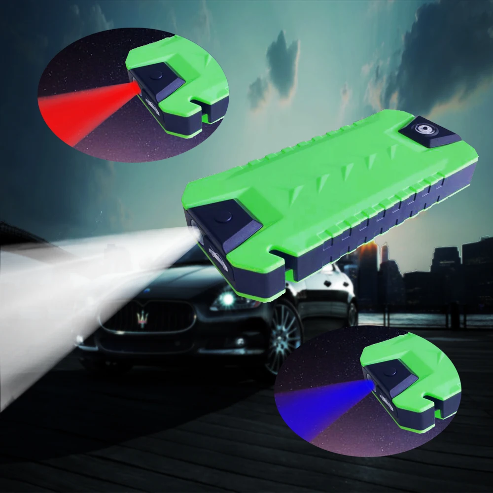 Product Details:1. Seat belt cutter2. Car starting EC5 port3. ON/OFF switch4. Multi-function light5. DC input6. Battery indicator7. USB output8. Glass break hammer9. Compass Tips: 1. Please leave a message in order, tell us which kind of plug you need (US UK EU AU), or we send EU plug by default.2. For safety of your car and jump starter, please DO NOT disassemble the jump starter. Once dismantled by yourself, we will not service for any arising issue.3. Please make sure that the jump starter is Fully Charged before starting the engine.4. If the jump starter can not start at one time. Please try it again after 30 seconds or longer, and start more slowly.