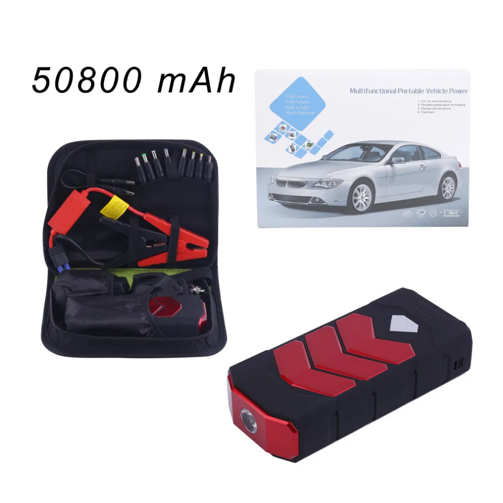 On-time Delivery: If you do not receive your purchase within 60 days, you can ask for a full refund before order completion (when you click "Confirm Order Received" or exceed confirmation timeframe).Hurry! New Newest 50800MAH Large Capacity Car Jump Starter Portale Size Emergency Vehicle Booster Battery Power Bank Charger Red