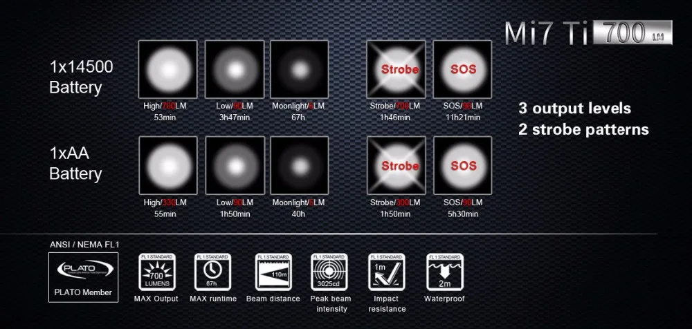 • Maximum output 700 Lumens; Maximum runtime 67 hours.