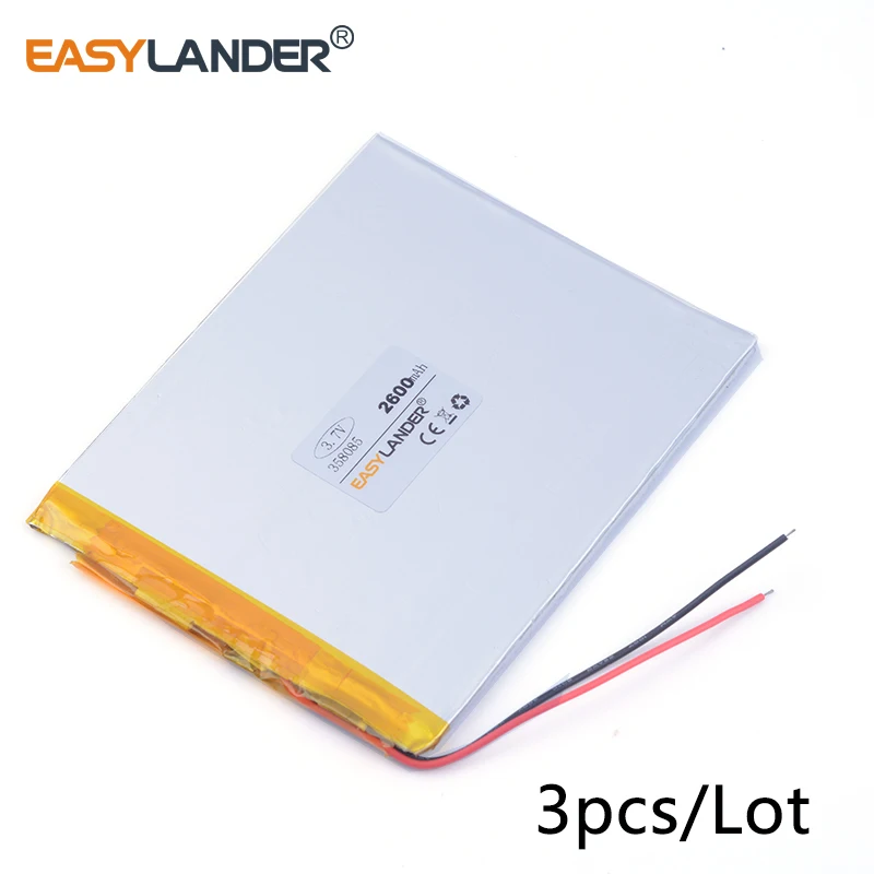 On-time Delivery: If you do not receive your purchase within 60 days, you can ask for a full refund before order completion (when you click "Confirm Order Received" or exceed confirmation timeframe).Excellent New 3pcs /Lot 3.7v lithium Li ion polymer rechargeable battery 358085 3.7 V 2600mah Tablet pc MID IPAQ Power bank DIY