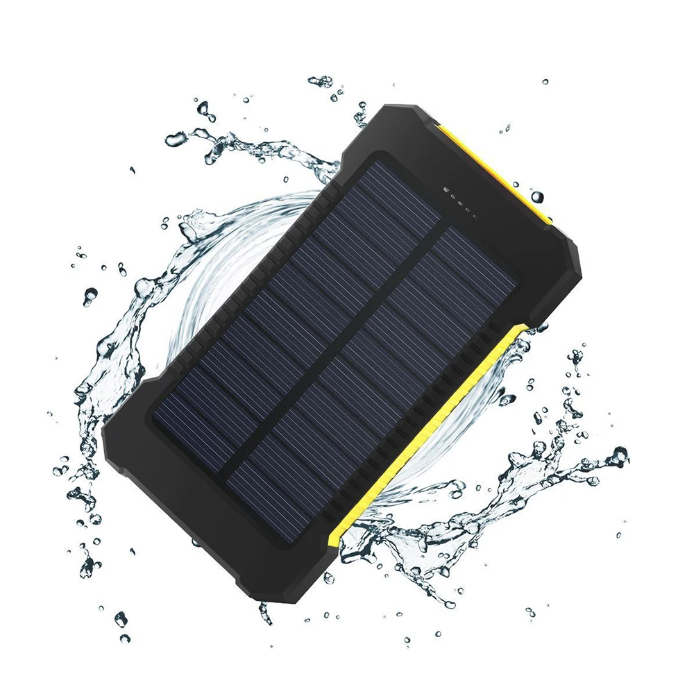 Item Recommend US $ 29.99 /piece US $ 19.99 /piece US $ 18.99 /piece US $ 25.99 /piece US $ 17.99 /piece Waterproof 10000mAh Portable Compass Solar Charger Dual USB Battery Power Bank For iPhone for Samsung SmartphoneFeatures: - Solar panel, you can recharge the battery itself under sunlight for emergency purpose while outdoor - Waterproof rating IP67 can help to protect against water, however cant soaked into the water. It can be a great choice for outdoor activities - Dual USB ports, you can charge phones, pads or other small electronic devices simultaneously - Material: Solar panel, ABS plastic cover, silicone frame - LED light, works perfectly in darkness, especially for emergency - SOS distress signal to help other people find you - The battery has passed the MSDS ( Material Safety Data Sheet )Specification: - Battery type: Li-polymer battery - Capacity: 10000mAh - Input: DC5V/1.0A - Output: DC5V/1A, DC5V/2.1A Battery Capacity(mAh): 10000mAh Dimensions and Weight Product weight: 0.193 kg Package weight: 0.270 kg Product Size(L x W x H): 138*76*19mm Package Size(L x W x H): 190*110*35mmPackage Contents 1 x Power Bank, 1 x USB Charging Cable,Important reminders .1. How to use Solar Function ? When you use the solar charging .it need to be put in bright sun light and cannot be interrupted, at least 48 hours to charging this power bank by Solar , and then Power Bank can abtain a certain amount of energy from solar, and then you can use this energy to charge your cell phone. (This solar function, just for emergency use,It runs very slowly in the sun, because its just a small solar panel, thats why have no significant reactivity in short time , recommended that you use the USB DC charging by wall adaptor if you want this power bank full and fast charged .)2.All the Power Bank have energy losing when charge the mobile phone by power bank.Generally, the power bank conversion rate is 60% -70%. So, your device can only get about 6000mAh to 7000mAh Energy from this Power Bank.Return Policy